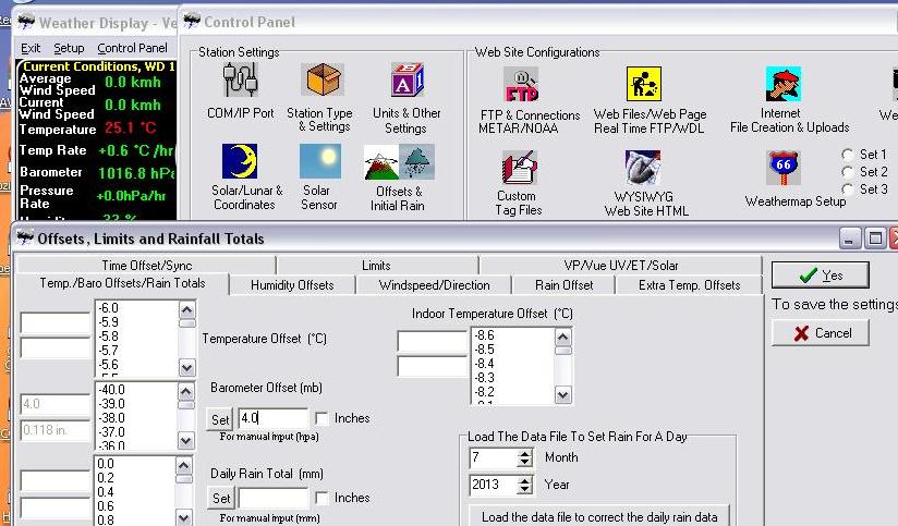 Select Tab - Temp/Baro Offsets/Rain Totals.