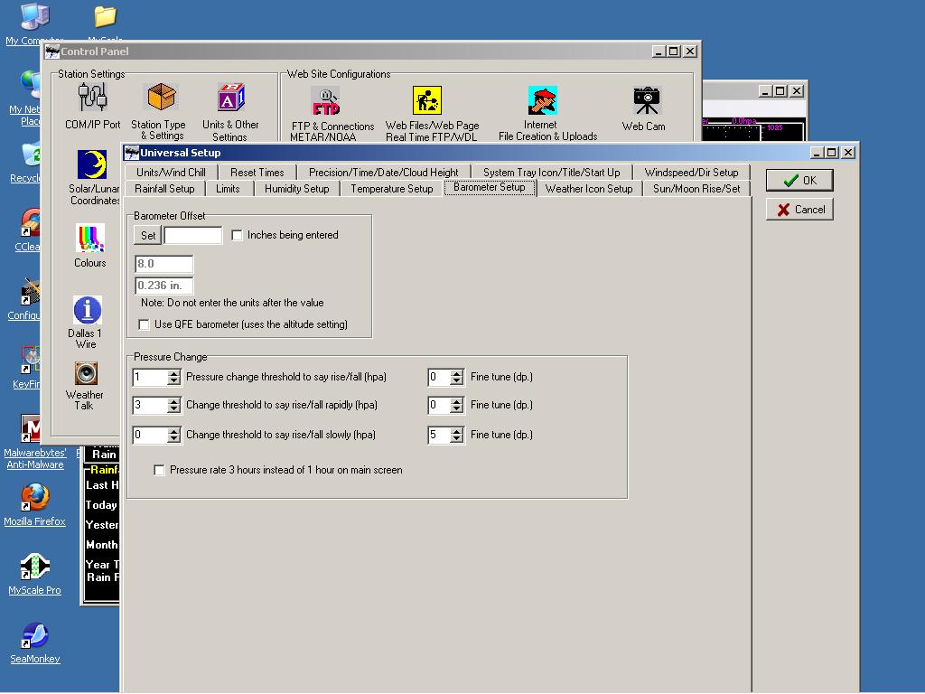 Second one down, Barometer Offset. Type in the value you wish to alter your pressure reading by. In the attached below I increase my barometer current reading by 4.0. To decrease it I would have put -4.0