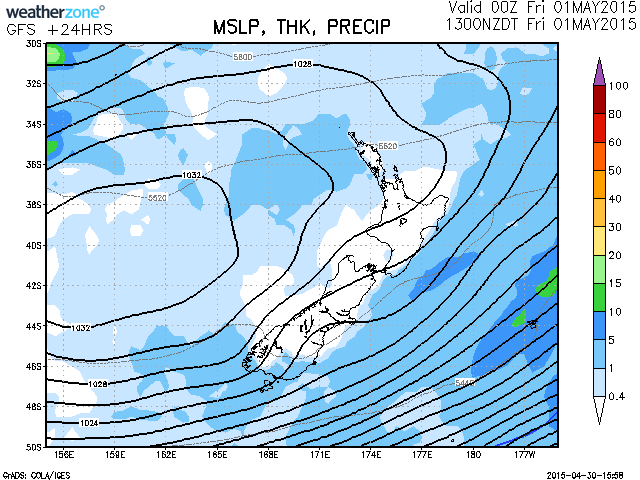 Fine at first. Cloud increasing south of Hamilton this afternoon or evening.