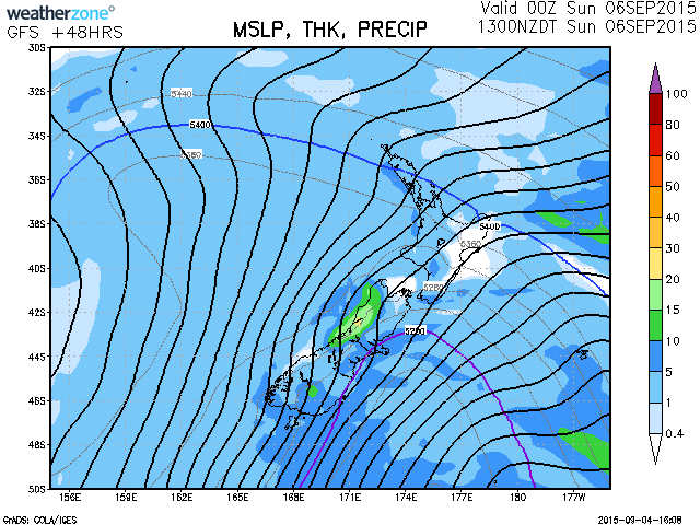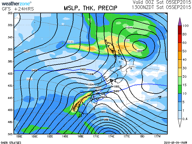 A band of heavy rain lies slow moving over the far north overnight Friday. A cold front sweeps up the South Island during Saturday and the North Island on Sunday. This front is preceded by strong to gale northwesterlies and is followed by wintry southwesterlies, which may rise to severe gale about some eastern areas on Sunday.