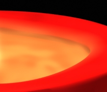 Red indicates heat with light emanating from something molten and very hot, so it appears it may be a molten metal in a cruciable prior to pouring out as a casting.