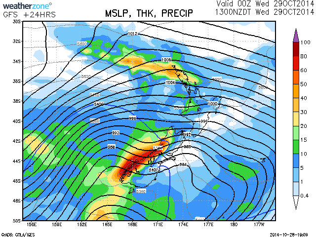 Marlborough to SouthlandHigh cloud with a few spots of rain this afternoon, then becoming fine tonight. Isolated showers tomorrow, with thunderstorms and hail possible in eastern Otago and Southland.