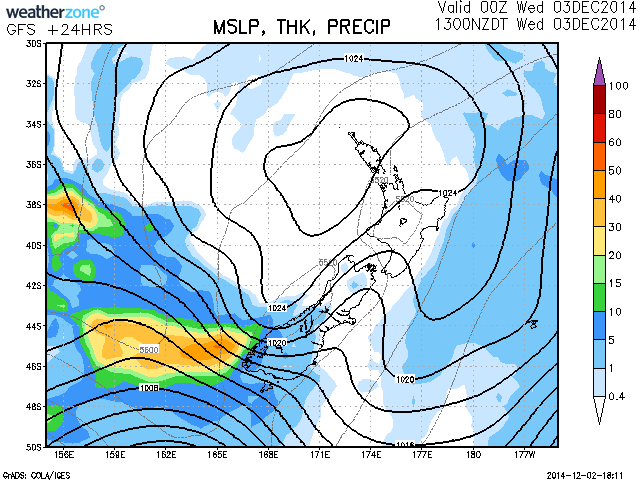 Canterbury, Otago and SouthlandHigh cloud increasing, with patchy rain in Southland this morning and elsewhere this afternoon or evening.