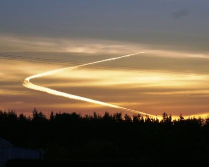 That has to be a jet contrail - the condensation trail left behind a jet. Sometimes they disappear rapidly, sometimes they don't and can spread out - basically dependent on the upper air conditions where the jet is cruising. This one shows the flight path of the plane changing in direction.