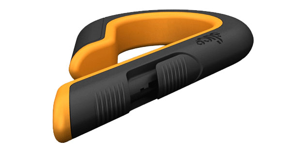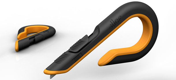I've seen a slidey thing like that on a vacuum cleaner handle... what about a letter opener, you slide it "open" and a blade comes out magically