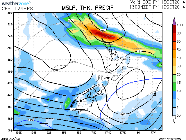 From Waikato and Bay of Plenty to WellingtonMainly fine. However, isolated showers in Bay of Plenty tomorrow morning and through inland areas tomorrow afternoon, possibly heavy and thundery about the central high country.