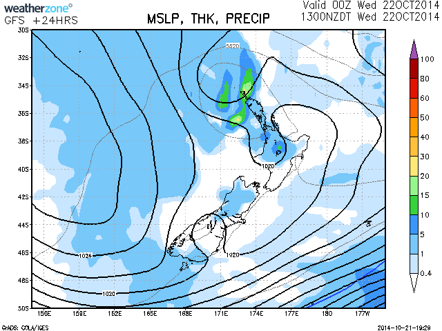 The North Island, from Taranaki, Taihape and Hawkes Bay northwardsFine and cloudy periods. Scattered showers, mainly inland in the afternoon and evening. A few localised heavy falls and thunderstorms are expected, mainly in the west from Waitomo to the southern parts of Auckland.