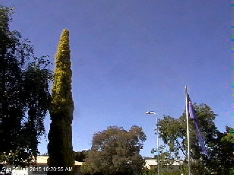 The sky is blue at the moment, bit of a breeze from the north west. 25 °