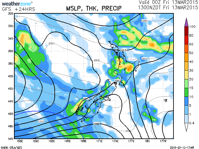Westland, Canterbury, Otago and SouthlandShowers spreading north with a southerly change. Some showers heavy, and isolated thunderstorms possible about eastern Otago.