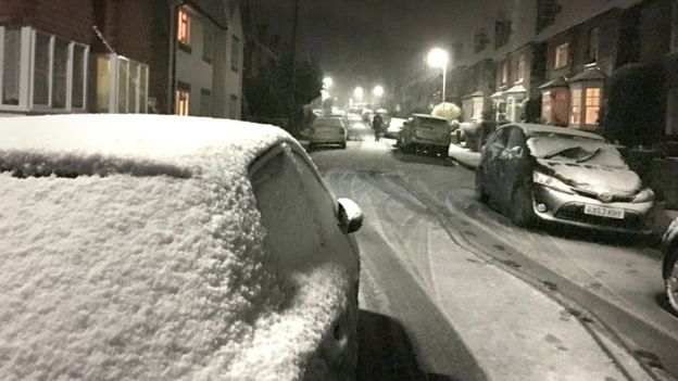 Large parts of the UK have already been hit by heavy snow, which has now started to affect southern areas, with warnings of snow and ice during this evening's rush hour.