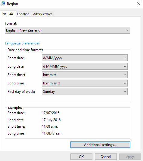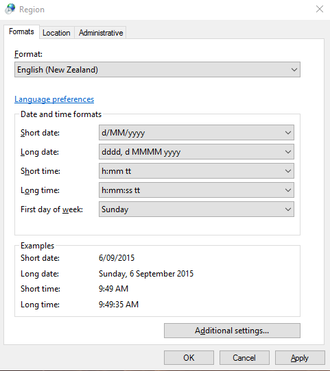 1- Suggested NZ Regional Settings