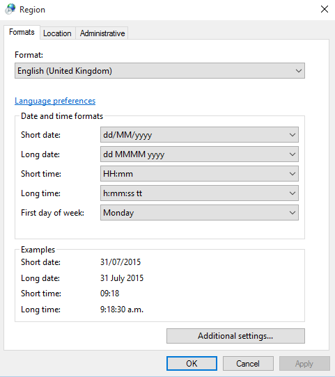 2 - UK Regional Settings