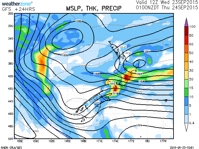 Meanwhile, showers about the remainder of the North Island eventually clear by the weekend, while the West Coast and far south of the South Island remain mostly fine.