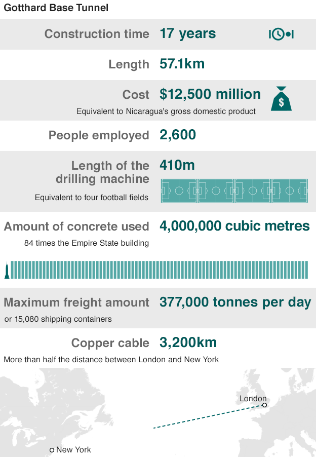The 57km (35-mile) twin-bore Gotthard base tunnel will provide a high-speed rail link under the Swiss Alps between northern and southern Europe.