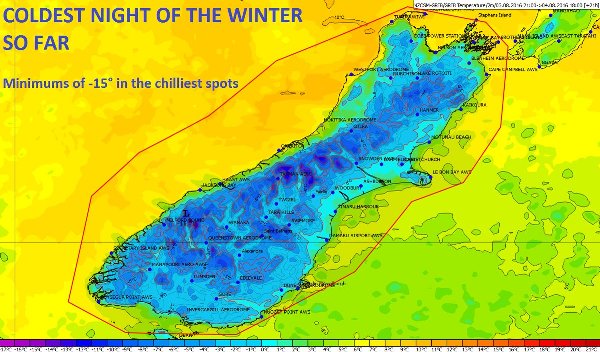 and what is still to come - Record setting cold temperatures are expected over the weekend, particularly on Saturday night in the South Island.