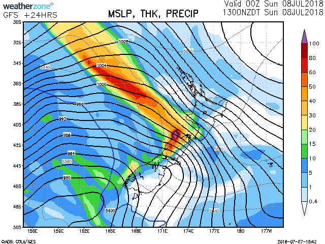 Severe Weather Warnings and Watches are in force for much of New Zealand.An active front is forecast to move eastwards across New Zealand during Sunday, preceded by a period of heavy rain and gale north to northwesterlies for many places, then followed by a strong and unsettled westerly flow into Monday.