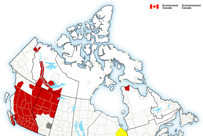 Hot spot in Alberta: 32.7 °C90.9 °F Masinasin